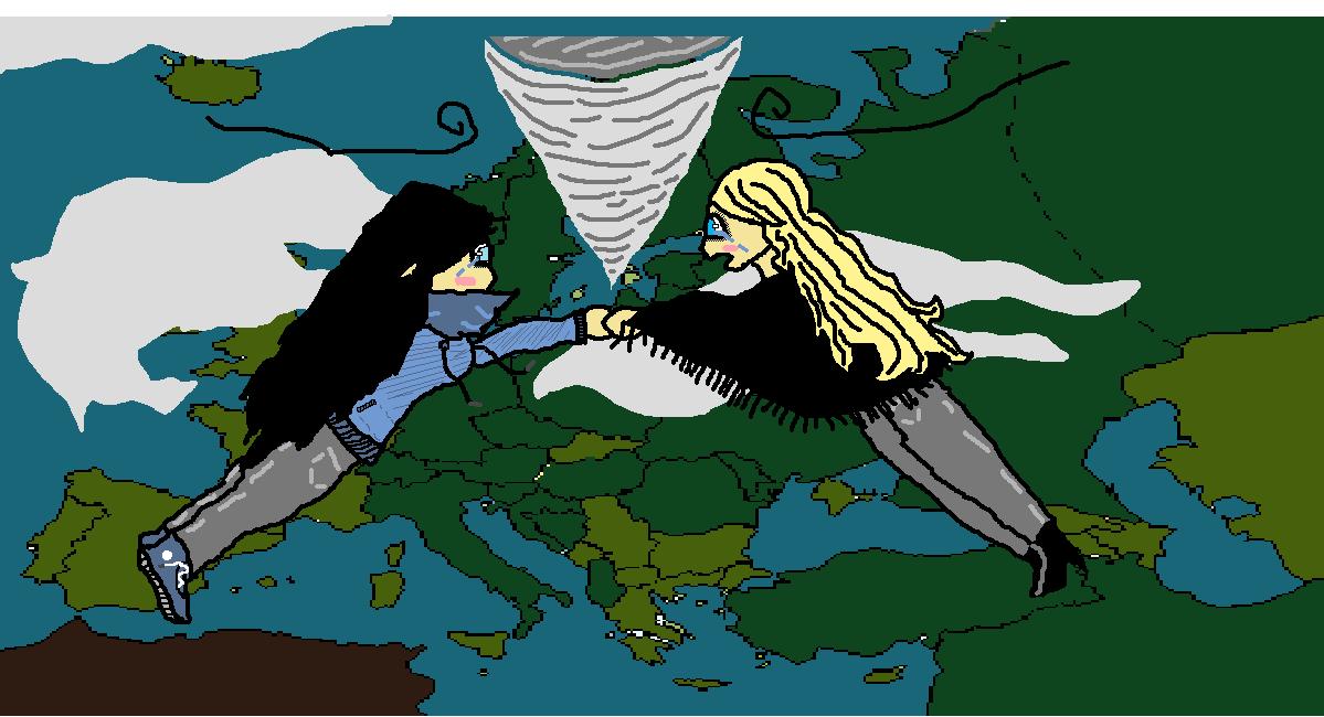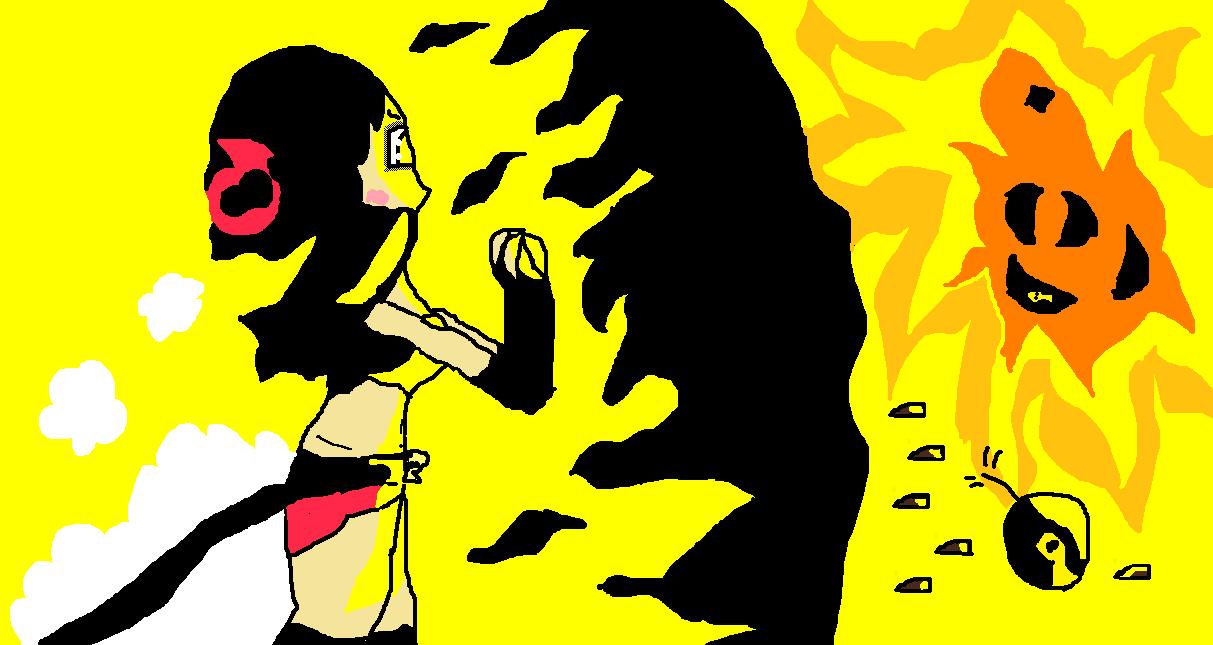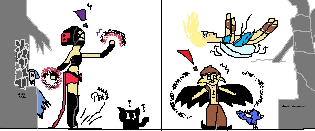 Intentaba agarrarme a la mano de Lucia. Había una tal brisa que se nos salían las lágrimas. Entonces algo nos separo y salí disparada hacia atrás. Me quede inconsciente unos instantes y luego me di cuenta de que estaba cayendo mas y mas abajo. Estaba asustada, sabia que tarde o temprano tocaría el suelo, así que decidí hacer una voltereta en el aire para conseguir caer de pies. Iba a tal velocidad que casi se me vuela la capucha que llevaba puesta. Un segundo... ¿Capucha? No había tiempo de pensar ya que aterricé en el suelo delante de una estatua, era un demonio con calaveras tiradas por el suelo. Me quede mirándola, y luego la descripción en la que ponía algo en un idioma extraño. Mire también un gato asustado con mi llegada, le iba a acariciar para tranquilizarlo pero ¡AAAH! ¿Que eran esos destellos rosas y negros que me salían de las manos? Me quede embobada mirándolos y entonces me volví loca y empecé a gritar que quería que me sacasen de allí. Entonces una voz me hablo, detrás de mi.