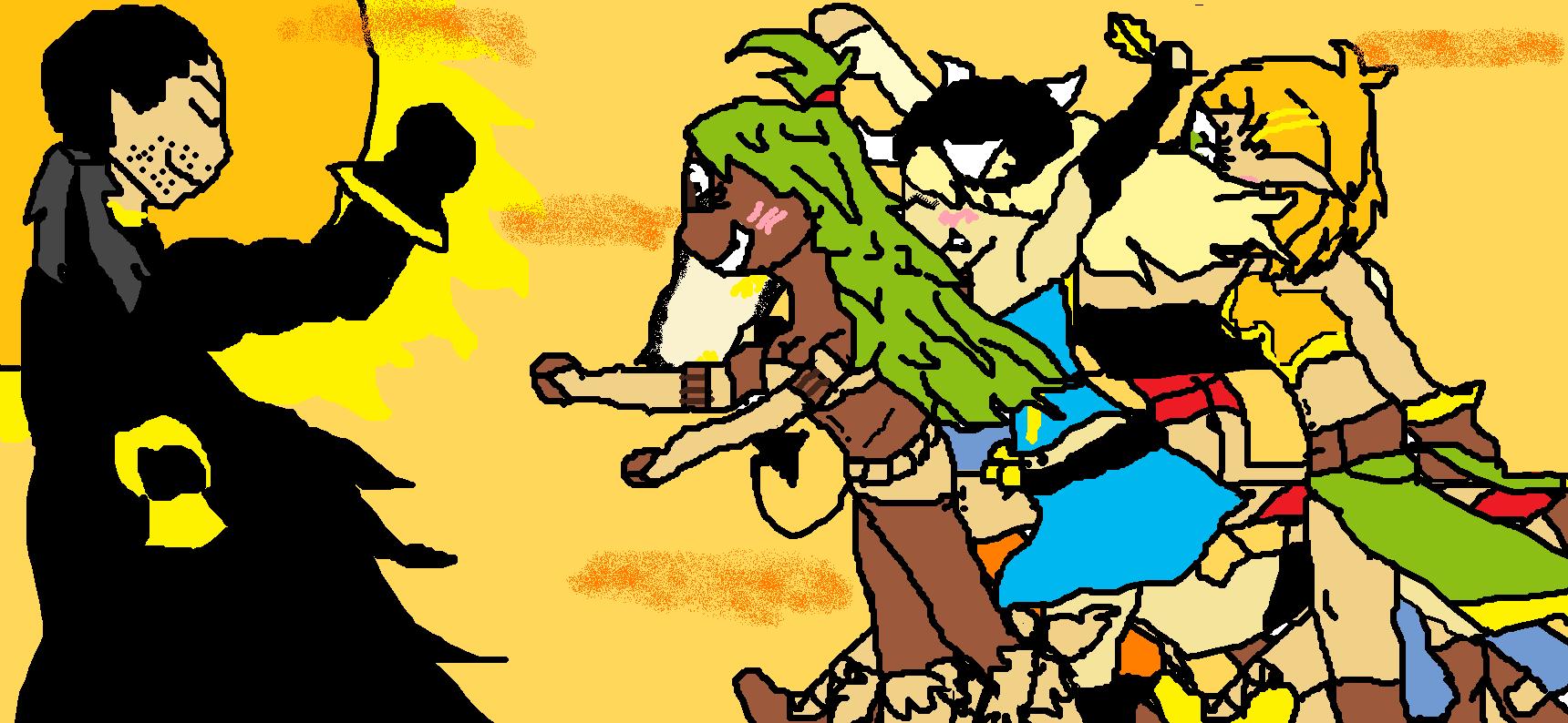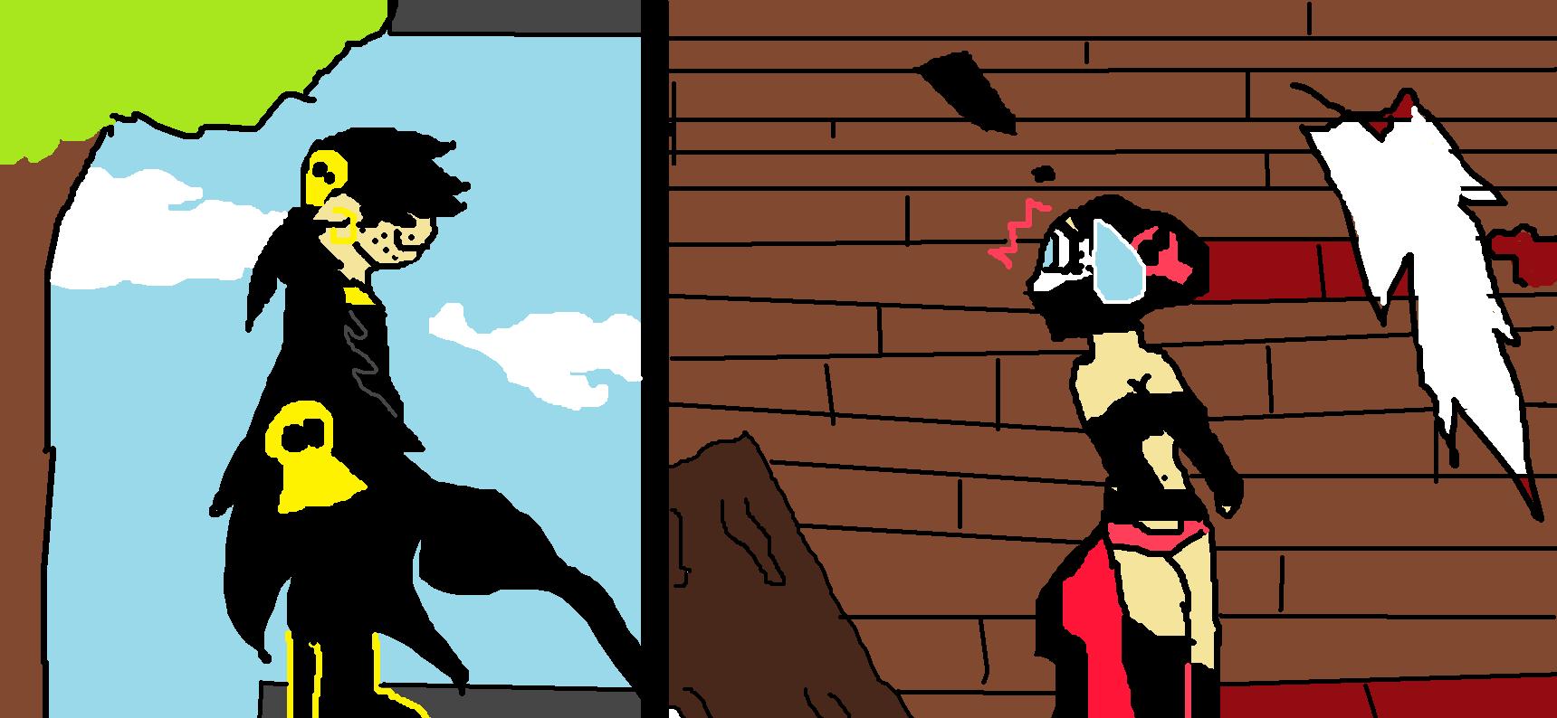 Oí un silvido, Eva se puso de pie de un salto y entro corriendo detras de mi. La primera puerta estaba abierta, con dos guardias derrumbados a los lados en el suelo pasé a la siguiente sala y ví a Cris rodeado de guardias, ahí es donde SI podía actuar, comenzo una batalla, ganamos con facilidad despues de unos cuantos golpes, fuimos a una sala llena de puertas, cada uno abria una diferente hasta que encontré la sala correcta.